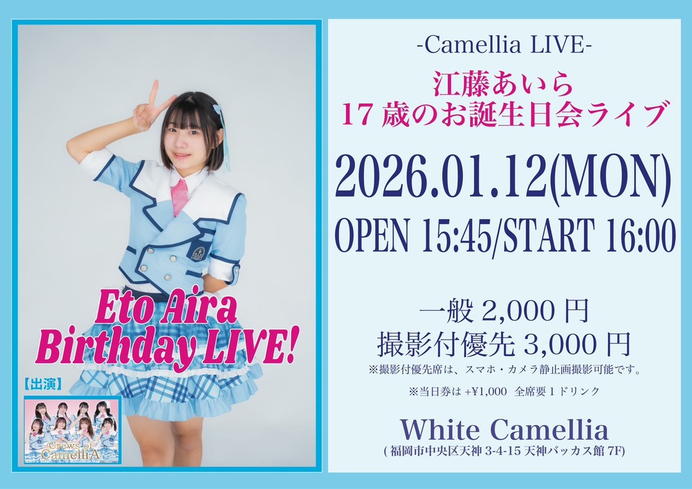 【FC先行チケット予約】1/12(月祝)②Camellia Live vol.695〜江藤あいらお誕生日会